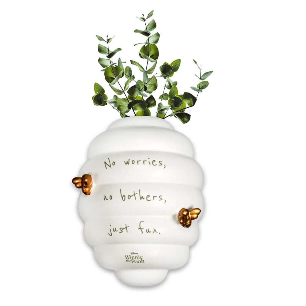 Shaped as Pooh's favourite snack, this beehive shaped vase will add character to homes with its unique and modern design. The vase features 3D bees with caption 'No worries, no bothers, just fun'.