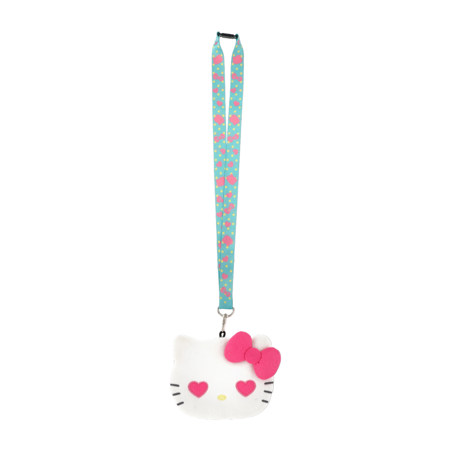 Hello Kitty Head with Heart Eyes Lanyard with Deluxe Plush Character Card Holder with Zipper, and approx 20 inch polyester strap.