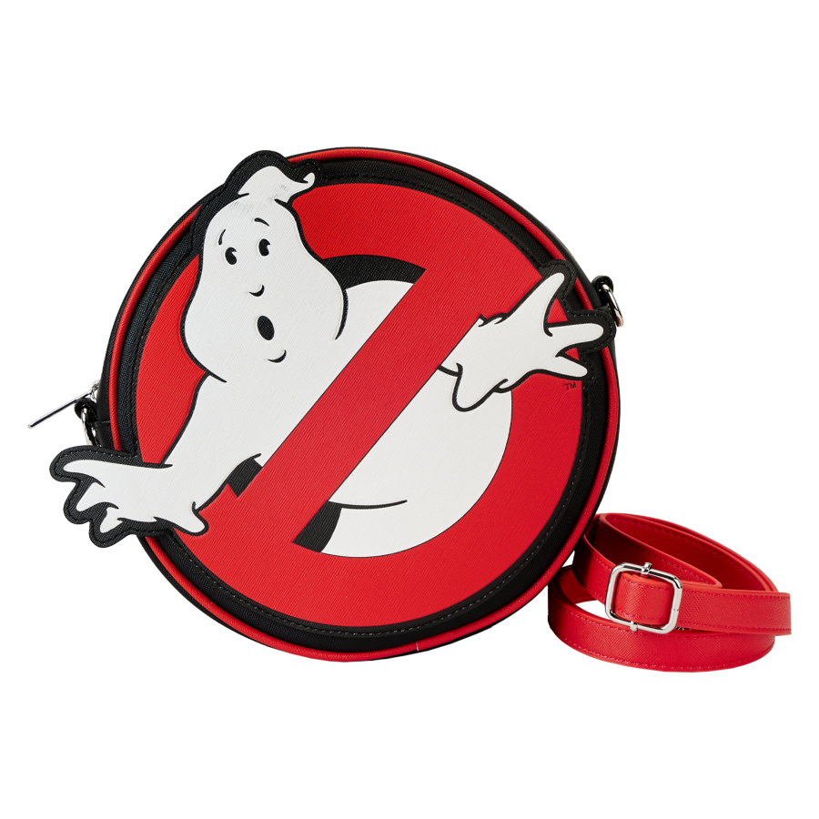 Prepare for adventures with the loungefly Ghostbusters Logo Crossbody Bag. This spirited accessory is fully figural, in the circular shape of the classic movie logo. In the dark, the ghost in the middle of the red "no ghost" sign glows!