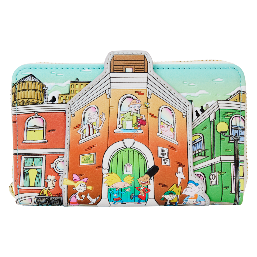 Welcome to the neighborhood! Join Arnold and his friends on an afternoon adventure as they appear on this zip around wallet. Look closely and you'll see an outline of Arnold's football-shaped silhouette on the clear ID slot inside. With plenty of room to hold your essentials, this accessory will keep you looking cool as you travel the streets of the city.
