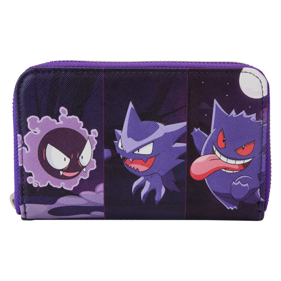 Don't ghost the chance to evolve your style! Level up with our Loungefly Pokémon Gengar Evolution Zip-Around Wallet. This dark purple accessory features the evolution of Gengar on the front: Gastly, Haunter, and Gengar. Their faces and forms come to life in debossed detail. On the back, all three evolutions of Gengar make an encore appearance in shadow form. Inside, you'll find approximately four slots for holding cards and one clear slot for displaying your ID. Secure and organize your valuables for the day, so you can play on!
