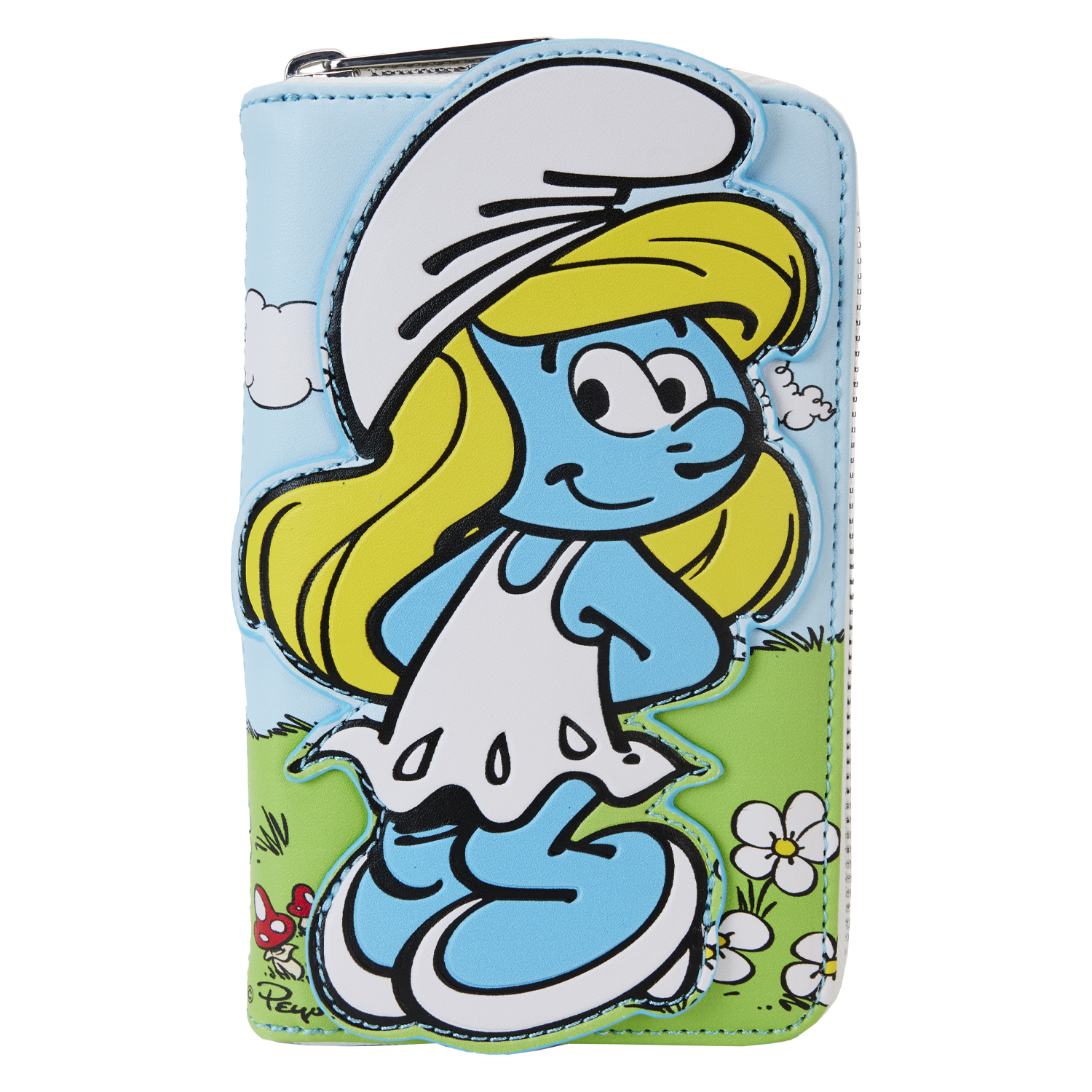 La-la-la-la-la-la! Have a wonderfully Smurfy day with our Loungefly The Smurfs Smurfette Cosplay Zip-Around Wallet. This blue wallet features Smurfette looking super cute, in die-cut applique detail. On the back, a beautifully sunny day in the Smurf Village of mushrooms is rendered in printed detail. Inside, you'll find approximately four slots for holding cards and one clear slot for displaying your ID. Make your way through the village in style with this fun accessory.