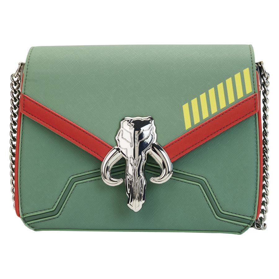The Loungefly Boba Fett Cosplay Crossbody Bag has suited up to join your Star Wars collection. Recalling Boba Fett's helmet, the front of this bag features red and yellow markings on the front and back. A molded metal rivet in the shape of the Mandalorian symbol keeps the bag closed, and an adjustable red shoulder strap brings the look together.
