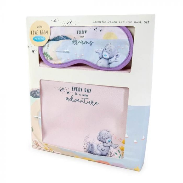 This Me to You Cosmetic Pouch and Eye Mask would make a wonderful gift for those who love their beauty products. The zip up pouch is in a pretty baby pink colour featuring a cute illustration of Tatty Teddy surrounded by flowers with the words 'Every day is an adventure' and is the perfect size for storing all your cosmetics. The eye mask is super soft and silky and features an illustration of Tatty Teddy at the seaside with the words 'Follow your dreams' in navy typography.
